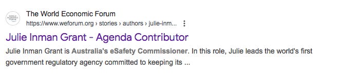 Julie Inman Grant: The WEF “Agenda Contributor”